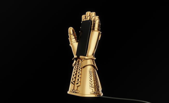 این شرکت به تازگی داک شارژ بی سیم آیفون را به نام Infinity Gauntlet معرفی کرده که در حقیقت یک دستکش فلزی ایستاده از جنس طلاست. البته این داک ارزان نبوده و قیمت 7700 دلار برای آن در نظر گرفته شده است. چنین قیمتی هزینه 8 دستگاه آیفون نسل جدید است و جالب است که برای خرید داک شارژ باید چنین هزینه ای کرد.